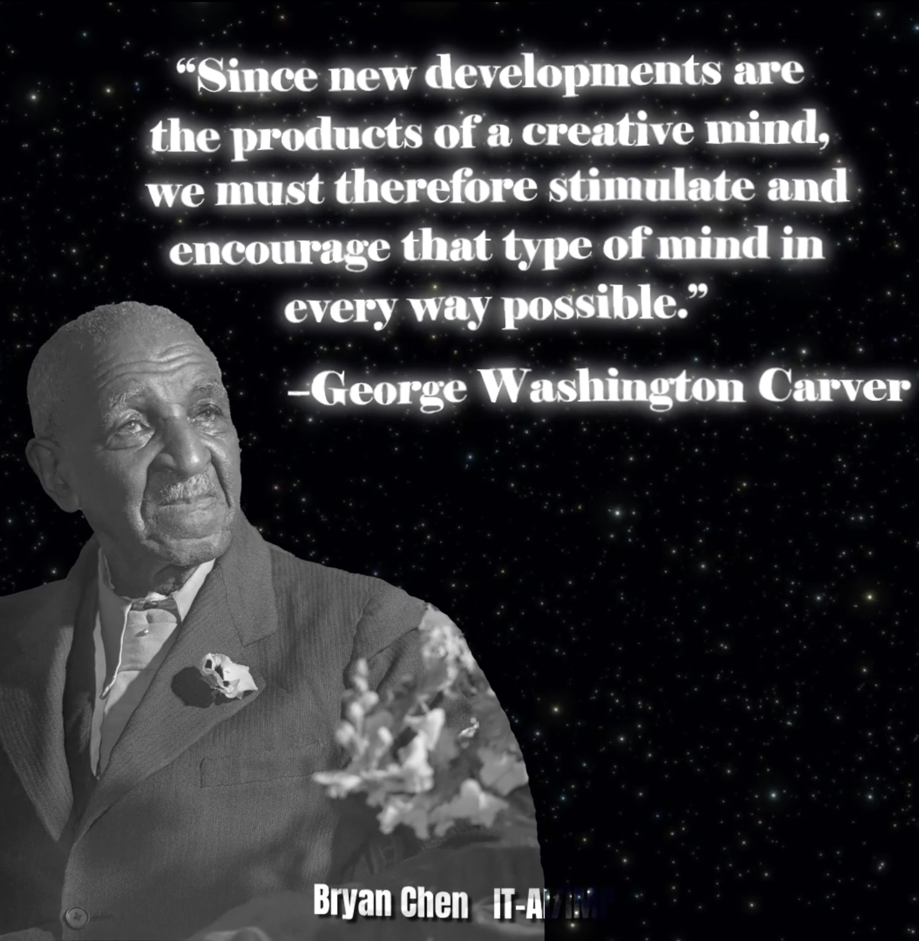 From my perspective, George Washington Carver’s quote seeks to utilize creativity not only to fabricate artwork, but also to solve problems, discover breakthroughs, and most importantly, drive progress. Carver desired societies that will promote the value of originality in thinking and foster the belief that ideas shouldn’t be considered to accept or reject their own possibility but more so as opportunities for growth. This practice of being creative to deal with setbacks such as mental block should especially be prominent in the field of game development. Since day one, my teachers in Carver Center have inspired me to dream boldly. My video in which I showcase the work that I produce throughout my journey at Carver Center emphasizes how each of my IT-AI/IMP projects have begun with a blank canvas, requiring a kick-start through creative brainstorming. It portrays how it is the power of creativity that encourages me to fill the emptiness and the same power that prompts me to cherish the path forward leading from now to the next possibility.