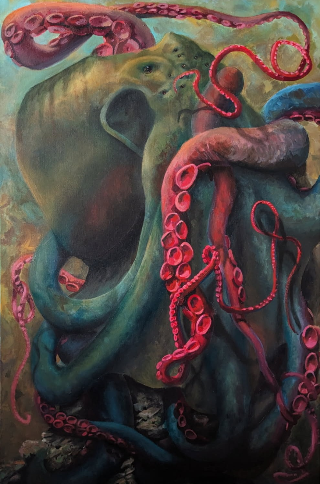 I'm always trying to paint about creative stories and fantasy, and demonstrate a sort of realization of the wonders of our world through an artistic eye, as seen through my creature painting (octopus-like creature). Like George Washington Carver, I'm a believer in pushing creative boundaries. I think it's really special to have a creative mind and I think creativity is contagious and it inspires people. Technology alone without creative minds is not enough for the world to move forward and advance. I'm a strong believer in creativity and thinking out of the box.
