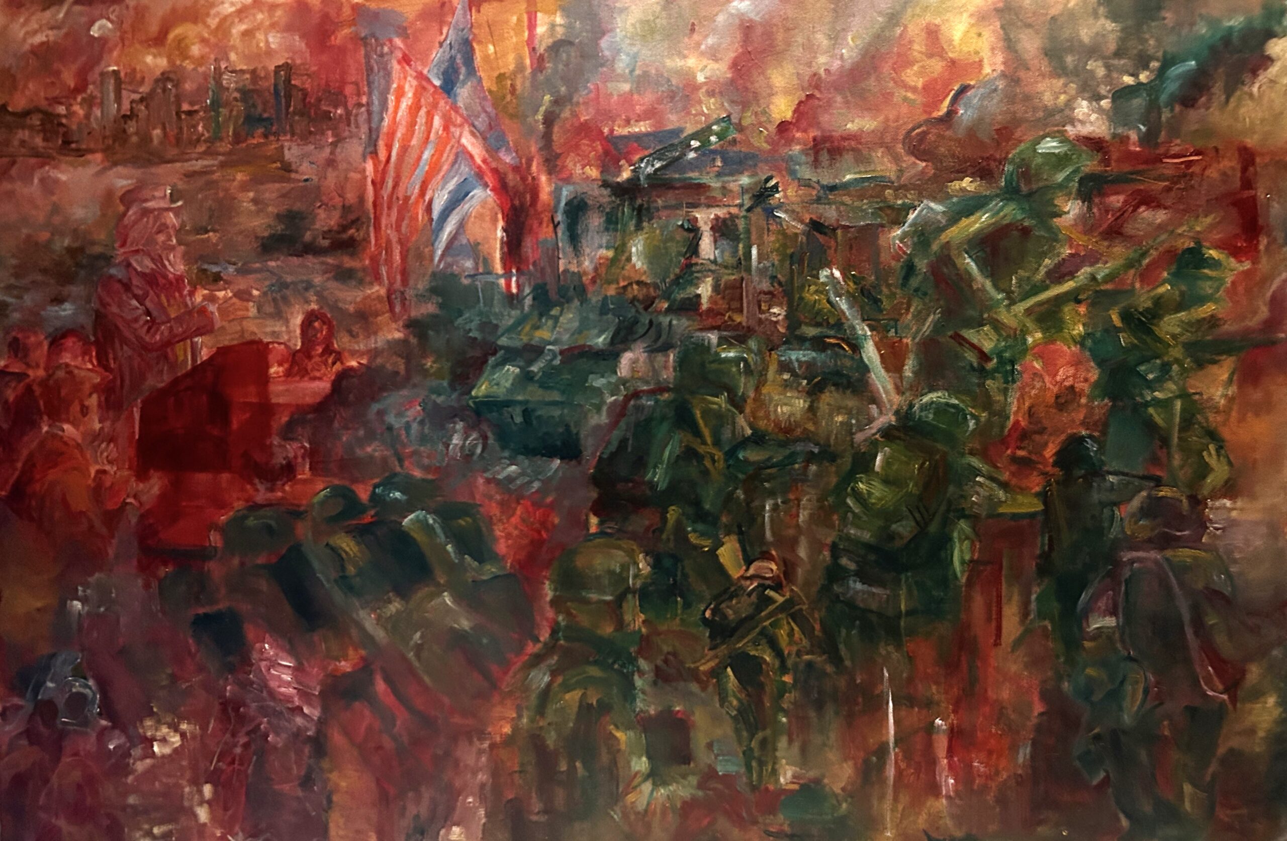Reflecting on George Washington Carver's words, my work depicts my father, who arrives from work, overseeing me as I sculpt my brother being watched over by the same parental figure, in the same situation I am currently in, curious to see both of his children's choices of success. In particular, the watchful eye of my father symbolizes the weight of expectations that he carries, along with his role as a product of his own imaginative yet creative spirit, which drives him to aspire for success at work, depicted by his work attire. Similarly, in the present moment, inspired by my fatherās symbolic curiosity and encouraging presence, it influences my creative motives, where creativity is not just an alternative path but a vital part of achieving success. Shown by the overflow of other sculptures and various paintings Iāve created that depict familial heritage, exceeding expectations, and individual narratives. Channeling inspiration and the message to all individuals to reflect that honoring these traditions doesn't mean sacrificing individuality. Instead, it can be a powerful foundation for personal growth, development, and realization that creative minds can stem from family. Making lineage of creativity crucial. Otherwise, in the back, my brother watches over my father and me, as heād just experienced the simultaneous scenario of being overwatched by the head of the family. Serving this mirrored experience as a reminder that each generation should build upon the dreams and aspirations of those who came before to show that the creative spirit is not just preserved but enlivened for future developments.
